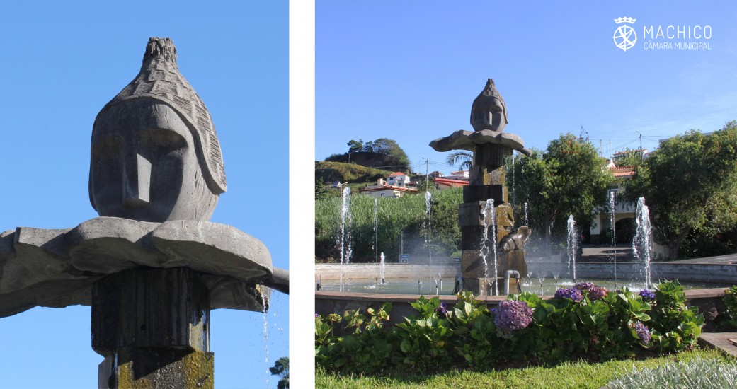 A escultura é de autoria do escultor Luís Alves Paixão, executada pelo Formador António Guedes e pela Fundição Lage, encontrando-se em frente ao edifício camarário de Machico. A obra evidencia alguns elementos simbólicos e conceptuais ligados a este momento histórico do achamento da Ilha, no âmbito da celebração dos 600 anos do descobrimento da Madeira, com o desembarque dos navegadores portugueses na Baía de Machico.